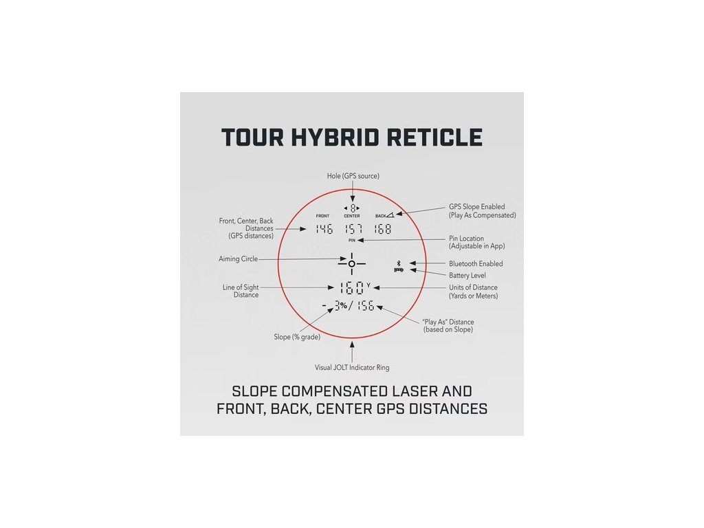 Integrované GPS + Slope korekce – hodnota "plays-as" z laseru i GPS, zobrazená přímo ve výhledu, aniž by bylo třeba spojení s mobilem.