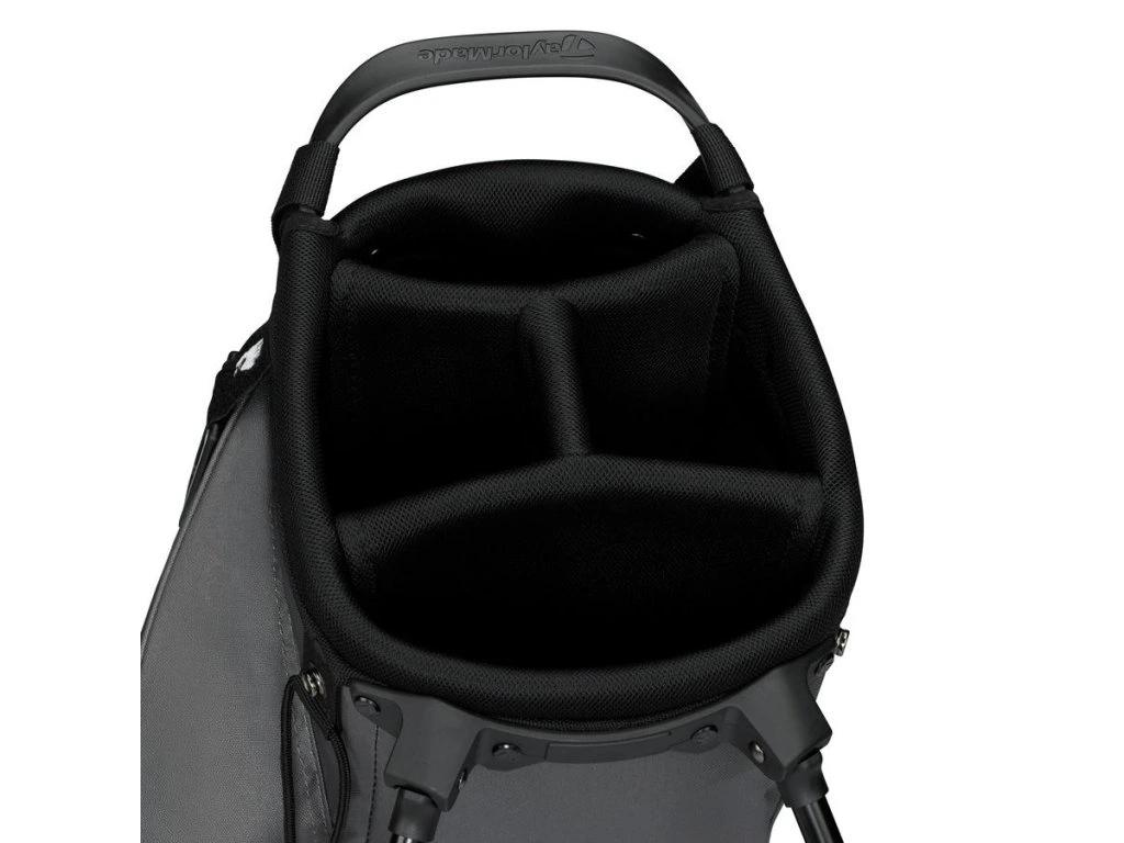 Bag má lehkou konstrukci (cca 2,22 kg) a praktický 4-komorový vršek, který udržuje hole přehledně oddělené. Stabilní základna Flex Base System zajišťuje pevné postavení bagu na různých površích, zatímco integrované nožičky umožňují snadný přístup k holím během hry.
