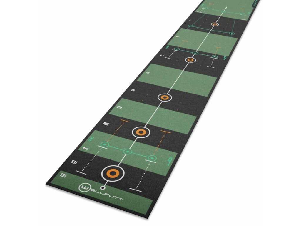 Wellputt 4M Performance Patovací Koberec je vysoce kvalitní puttingová tréninková podložka navržená pro golfisty všech úrovní, kteří chtějí zlepšit svou puttingovou hru doma, v kanceláři nebo v uzavřeném prostoru. Mat přesně simuluje středně až rychlý green, takže si osvojíte realistický pocit a kontrolu nad míčem při krátkých ranách.