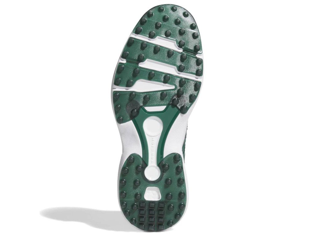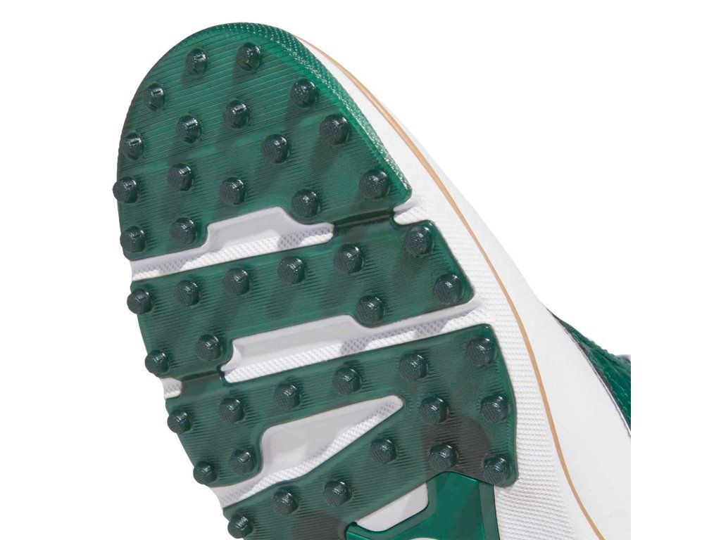 Barevné provedení Cloud White / Collegiate Navy / Halo Silver – čistá a elegantní kombinace vhodná ke klasickému golfovému outfitu.