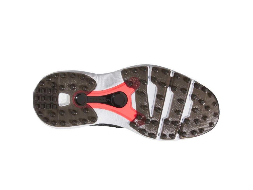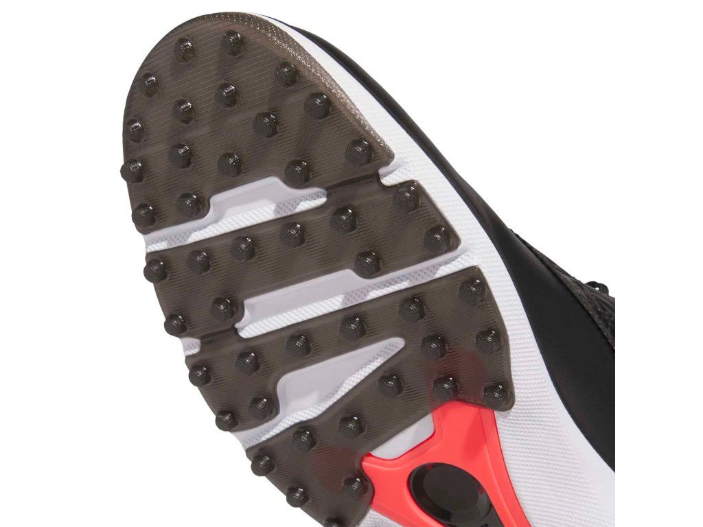 Barevné provedení Cloud White / Collegiate Navy / Halo Silver – čistá a elegantní kombinace vhodná ke klasickému golfovému outfitu.