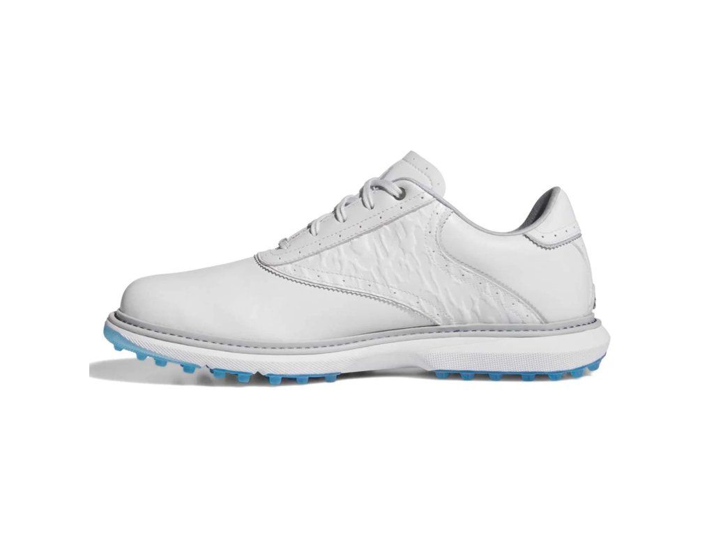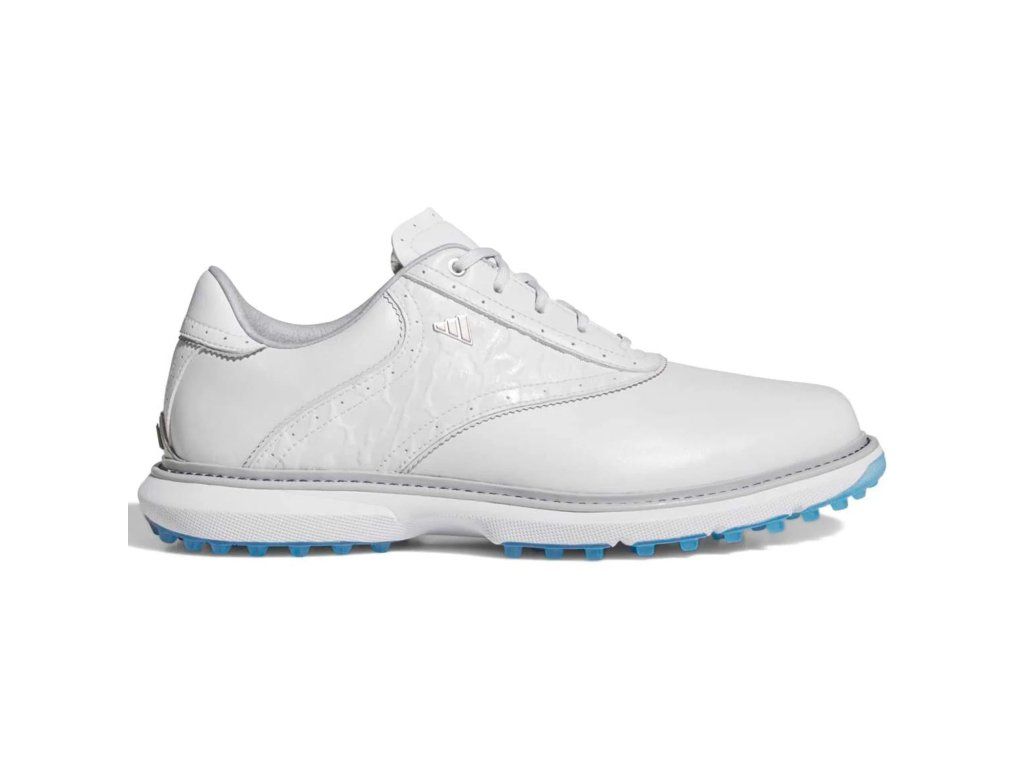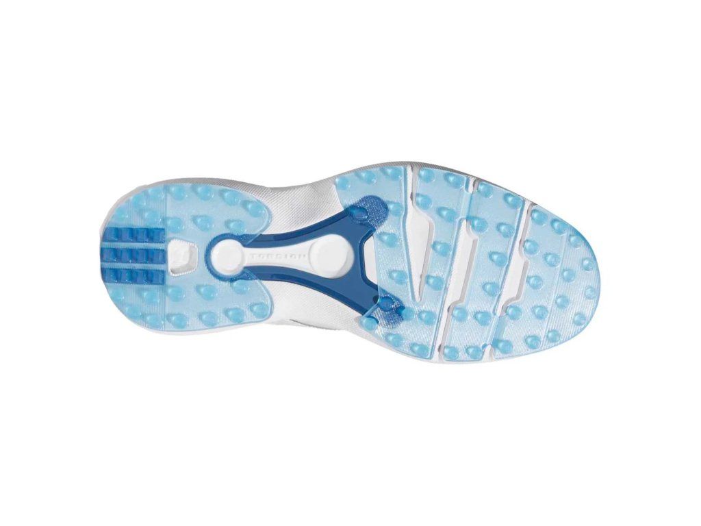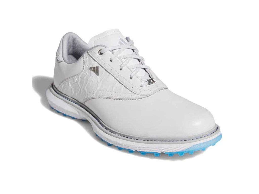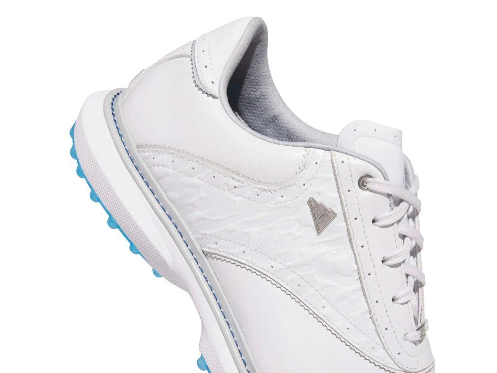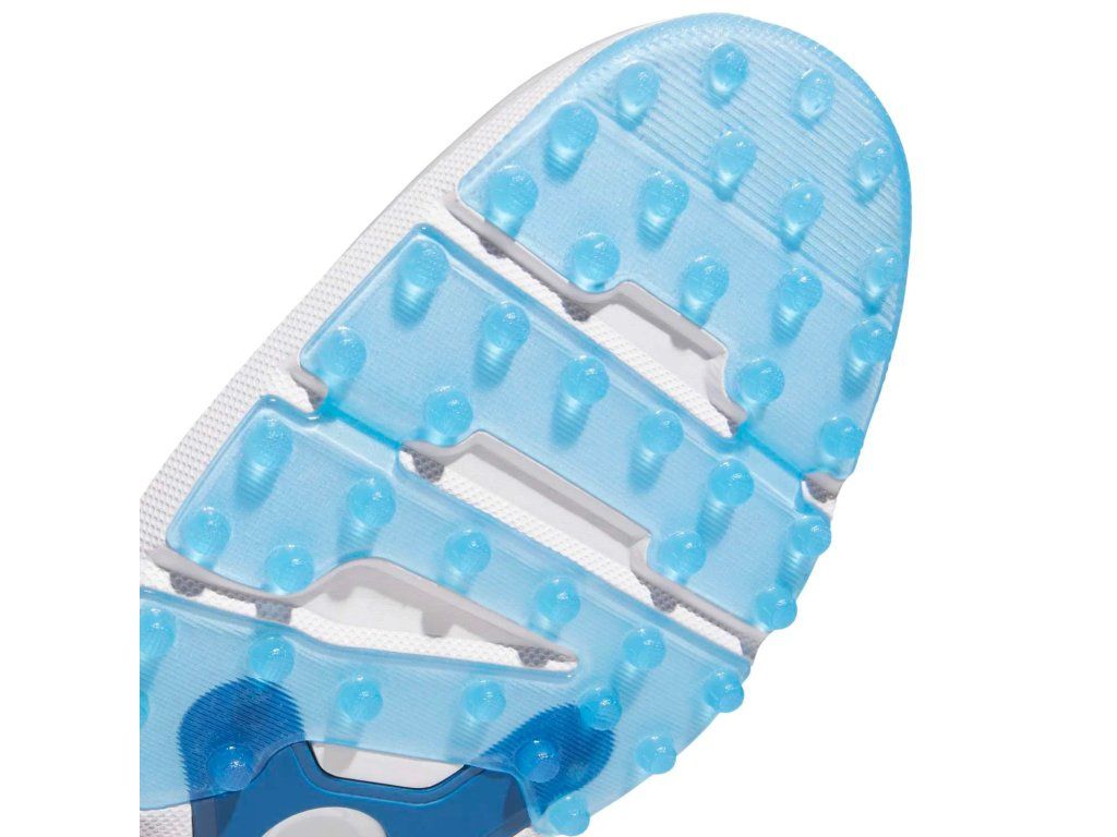 Barevné provedení Cloud White / Collegiate Navy / Halo Silver – čistá a elegantní kombinace vhodná ke klasickému golfovému outfitu.