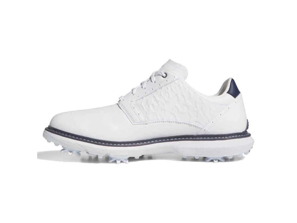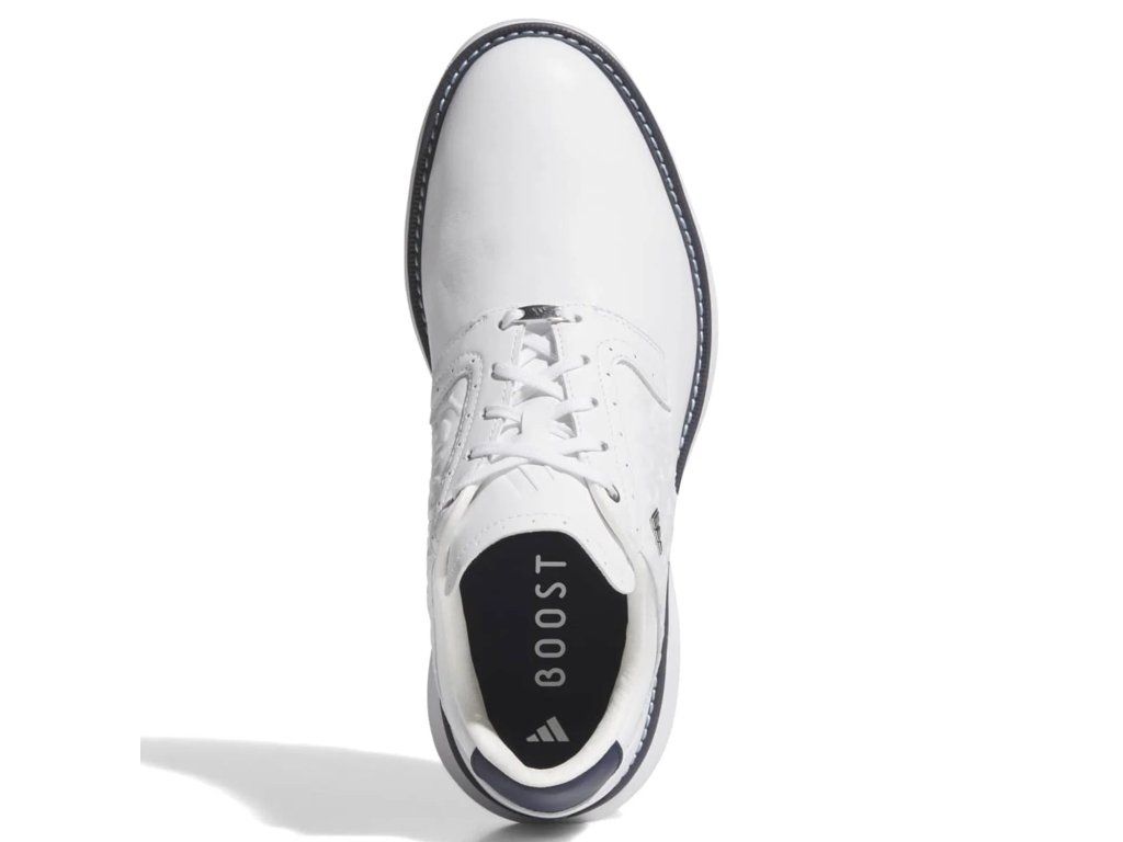 Adidas MC70 SPK jsou golfové boty pro hráče, kteří chtějí elegantní, tradičně laděný vzhled a zároveň pohodlí odpovídající moderní golfové obuvi. Na oficiální stránce adidas jsou vedené jako golfové boty MC70 v barevném provedení Cloud White / Silver Metallic / Collegiate Navy.